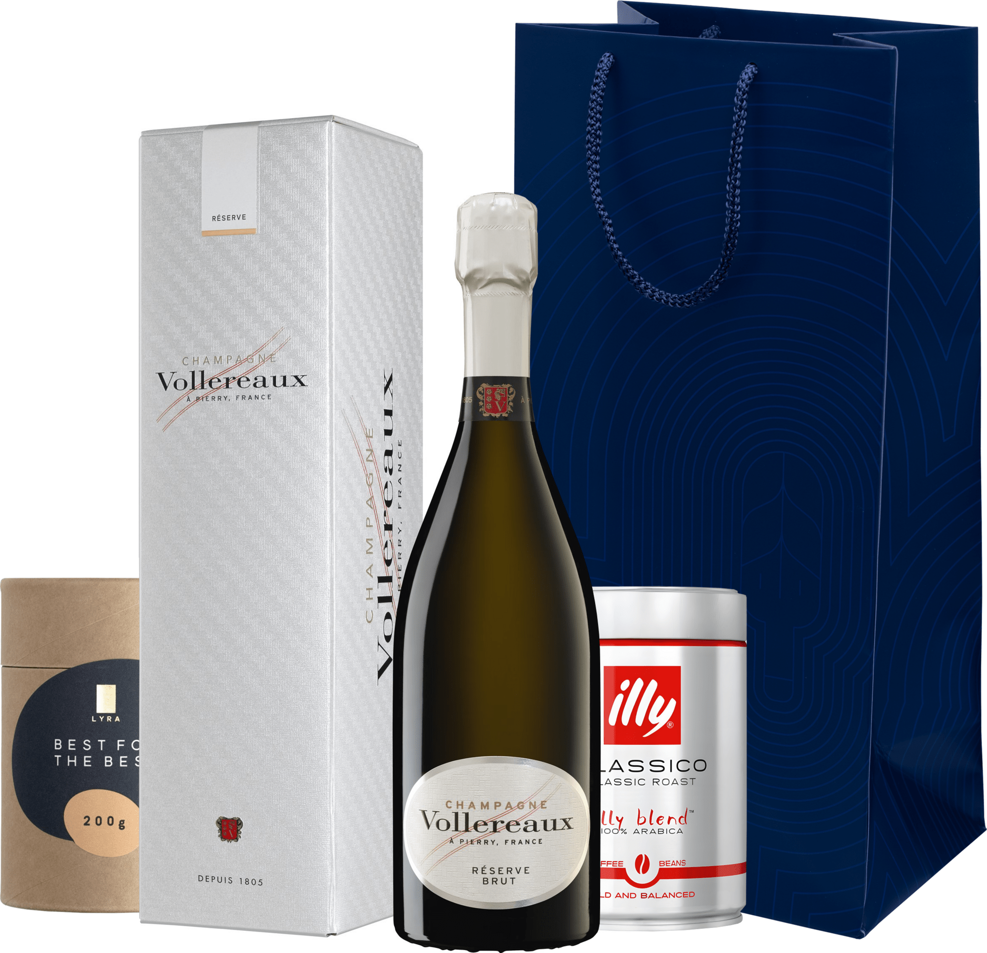 Vollereaux Réserve Brut je velmi kvalitní a neobyčejné suché bílé francouzské šampaňské víno. Obsahuje malé, ale zároveň jemné bublinky, které zpříjemňují chuť a požitek z tohoto vína. Pochází z oblasti Champagne a je vyrobeno ze tří odrůd hroznů Chardonnay 34 %, Pinot Noir 33 % a Meunier 33 %. Směs zrala 4 roky v sudech.