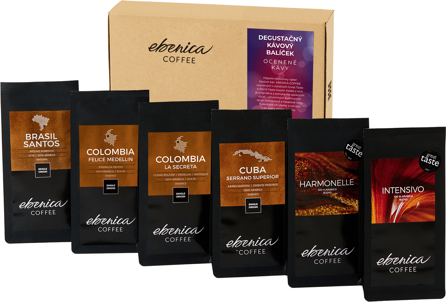 Tento exkluzivní degustační balíček Ebenica Ocenené Kávy představuje výběr šesti káv Ebenica, které získaly prestižní mezinárodní ocenění za kvalitu a chuť – včetně hvězdiček z Great Taste Awards. V balíčku najdete: Intensivo, Harmonelle, Cuba, Colombia La Secreta, Colombia Felice Medellin a Brasil Santos – každá s odlišným charakterom, ale stejnou řemeslnou precizností.