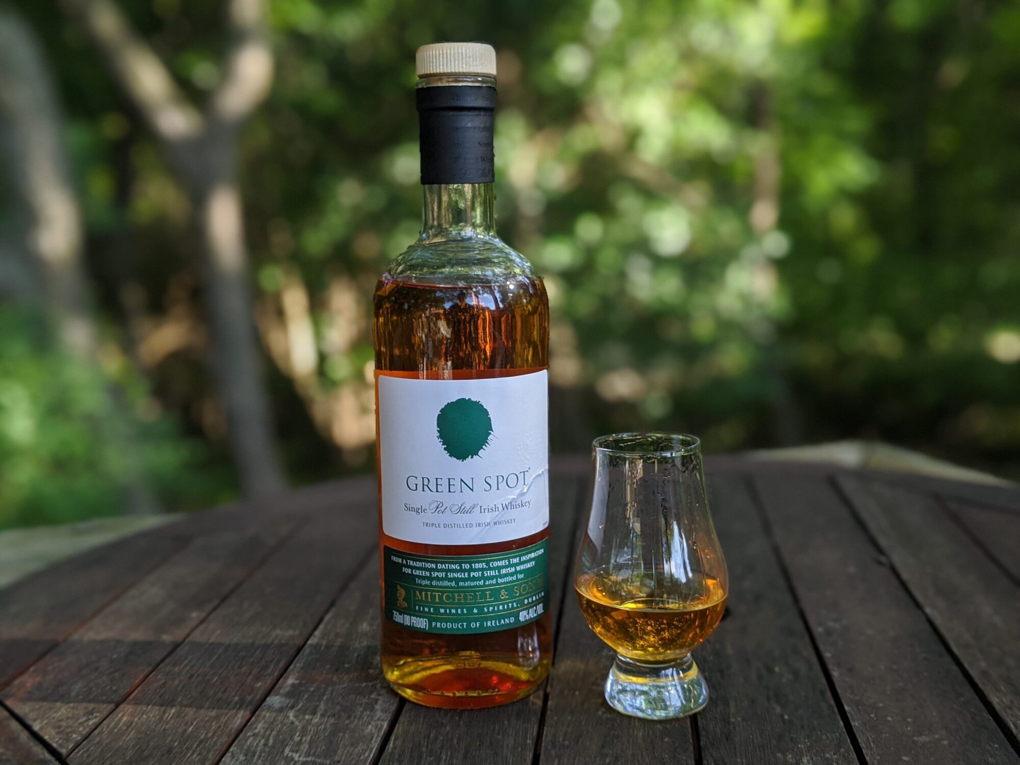 Kultovní irská whiskey Green Spot. Jedná se o kvalitní a snad nejznámější irskou whiskey bez udání stáří. Obvykle zraje v dubových sudech po sherry, malaga nebo bourbonu po dobu 8 až 9 let.