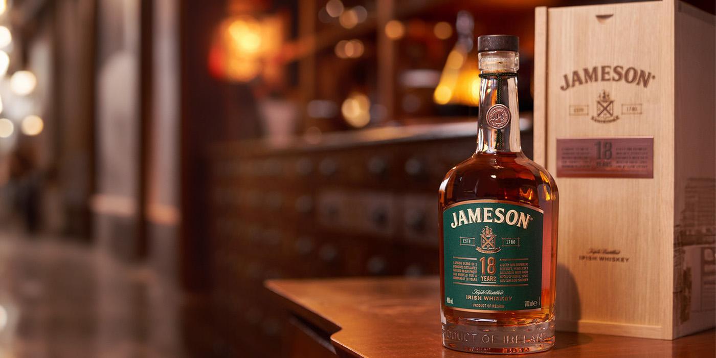Několikanásobně oceněná irská 18-letá whiskey Jameson, která zrála v ex-bourbon a ex-sherry Oloroso sudech.