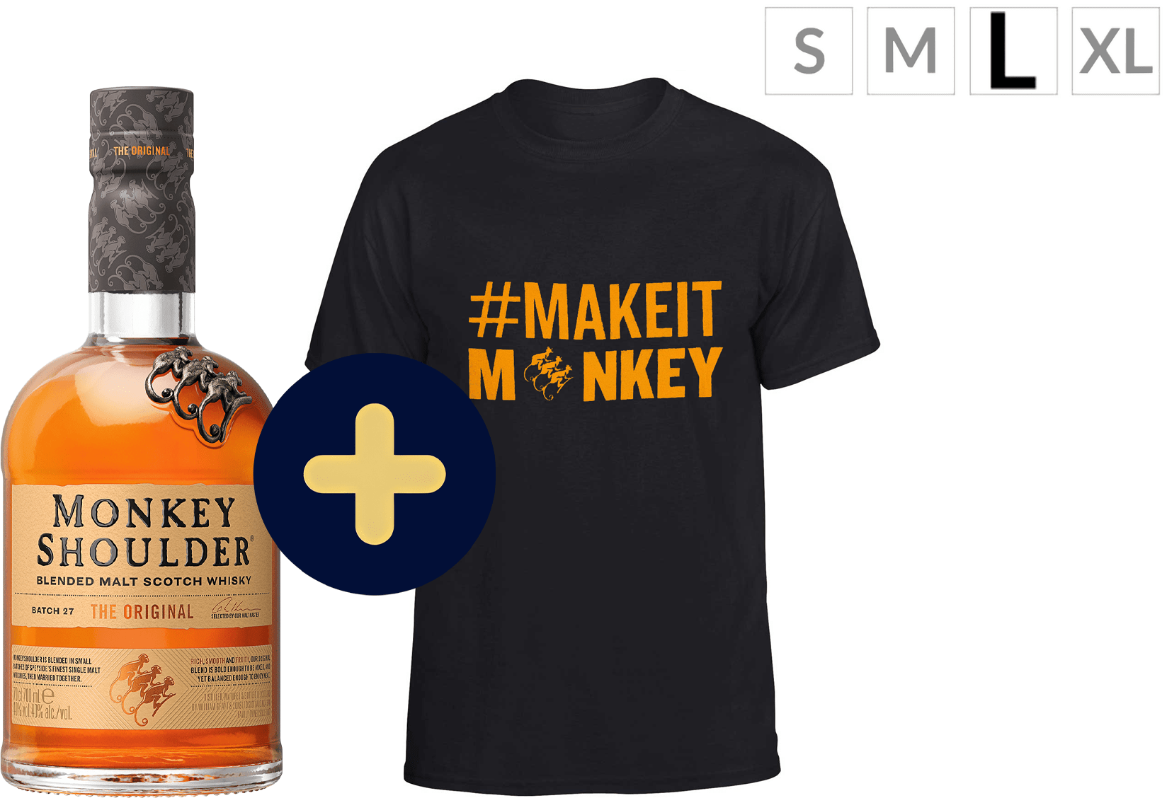 Vychutnejte si ikonickou skotskou blended malt whisky Monkey Shoulder s jemným vanilkovo-medovým profilem a ovocnými tóny. A k tomu získejte stylové pánské tričko ve velikosti L jako dárek. Skvělý tip na originální dárek pro sebe nebo pro někoho blízkého.