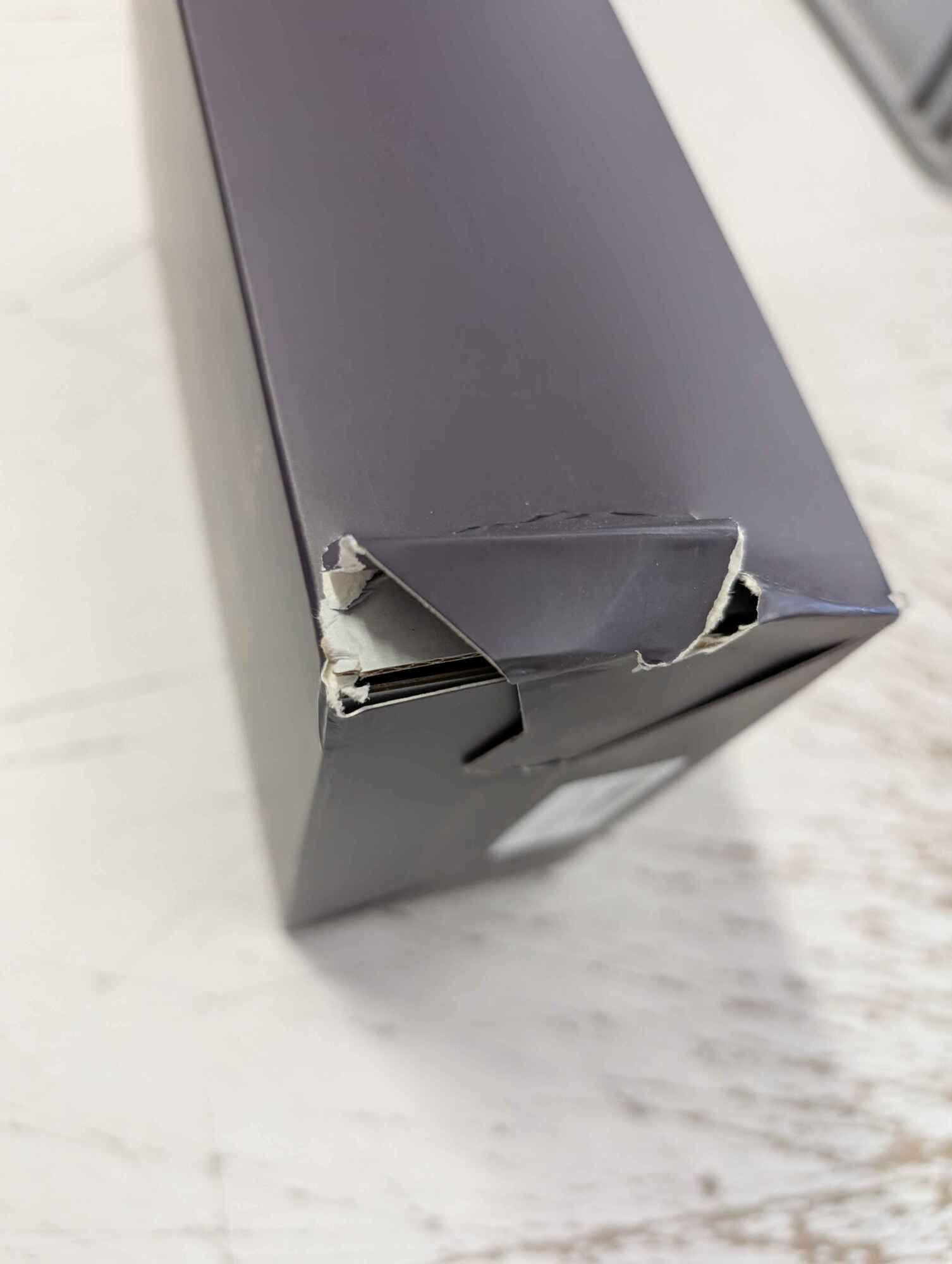 Produkt s poškozeným kartonovým obalem.